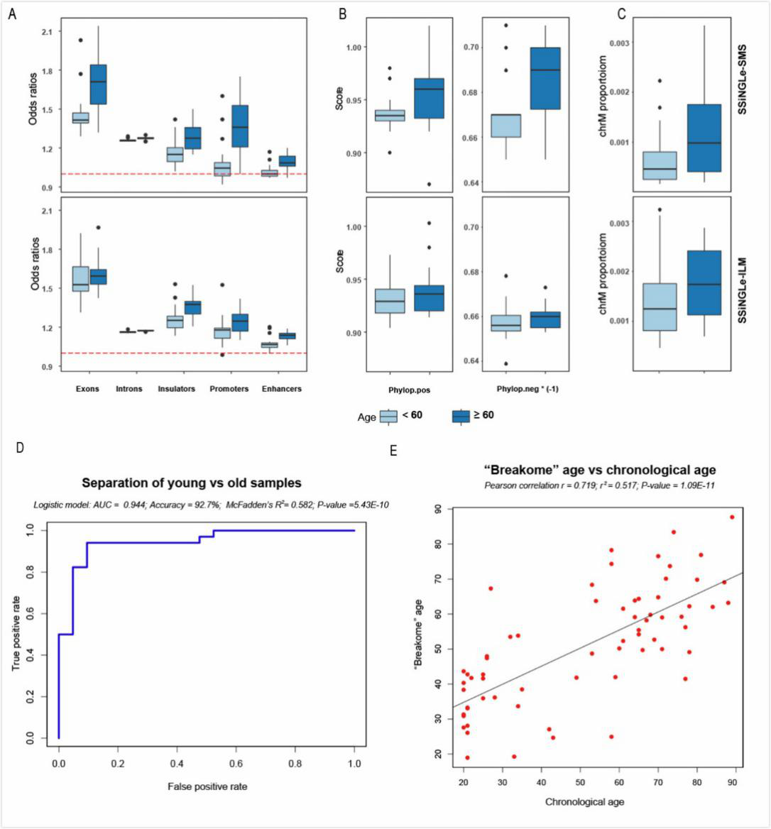 图2.单链DNA断裂的多个基因组特征与人类年龄相关