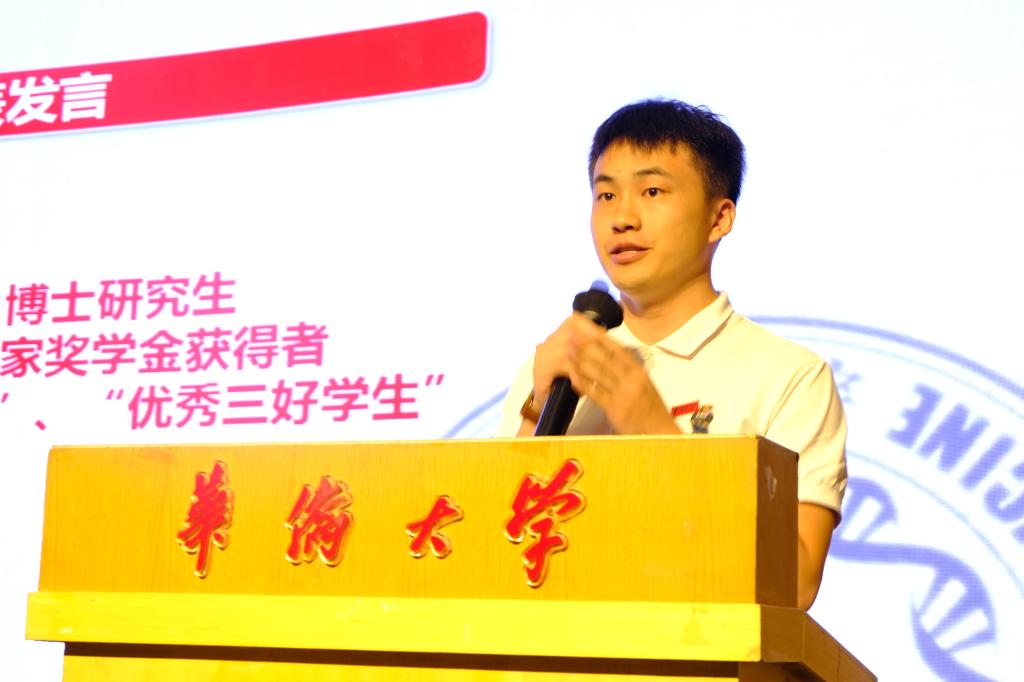 办学历程和办学现状,并向2019级新生提出了期望与要求,他希望新生要做有德之人、做有技之人、做有梦之人。林俊生副院长在致辞中以“小信诚则大信立”告诫新生必诚信。华侨大学附属海峡医院金明亮副院长回顾了双方在人才培养、科学研究以及医疗协作等方面合作历程。家长代表、2019级药学专业程若楠妈妈郑安安女士嘱托期盼新生们成为一个“独立”的人。教师代表柯荣秦教授,在校生代表、博士研究生国家奖学金获得者张伟,新生代表、2019级临床医学专业严佳怡依次进行发言。