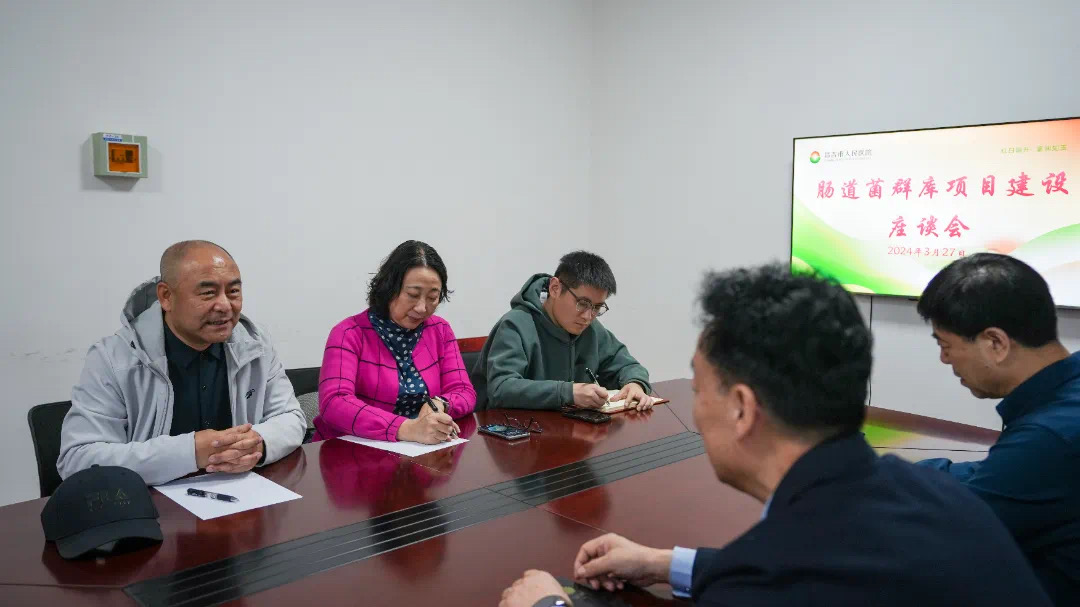 副院长董少良、华侨大学精准医学中心教授于海龙及相关专家一行在院党委书记张勇的陪同下,调研了院区两处PCR实验室,一处拟改建的肠道菌群微型库,查看了硬件设施设备及场地情况。随后,在会议室进行了肠道菌群库建设项目的座谈会,围绕项目实施的步骤、过程、场地改建、人员培训、技术支持等各方面进行了深入交流。目前,初步确定2024年重点从菌群库基础建设、广泛培训及科普、开展临床应用并启动科研项目申报、开展学术交流与技术推广四个方面推进。